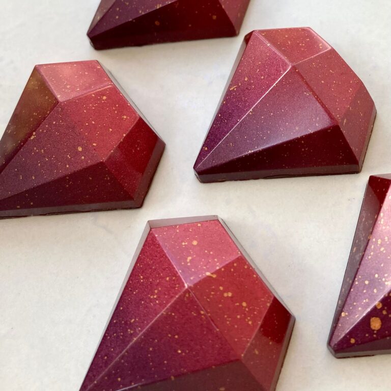The Roxy & Rich range is ready out of the box to spray and paint your creations for that extra level of visual flair. They can be added straight into your spray gun, or, pour a small amount in a bowl and use a clean paintbrush to ‘flick’ onto chocolate moulds for a wonderful splatter effect.
